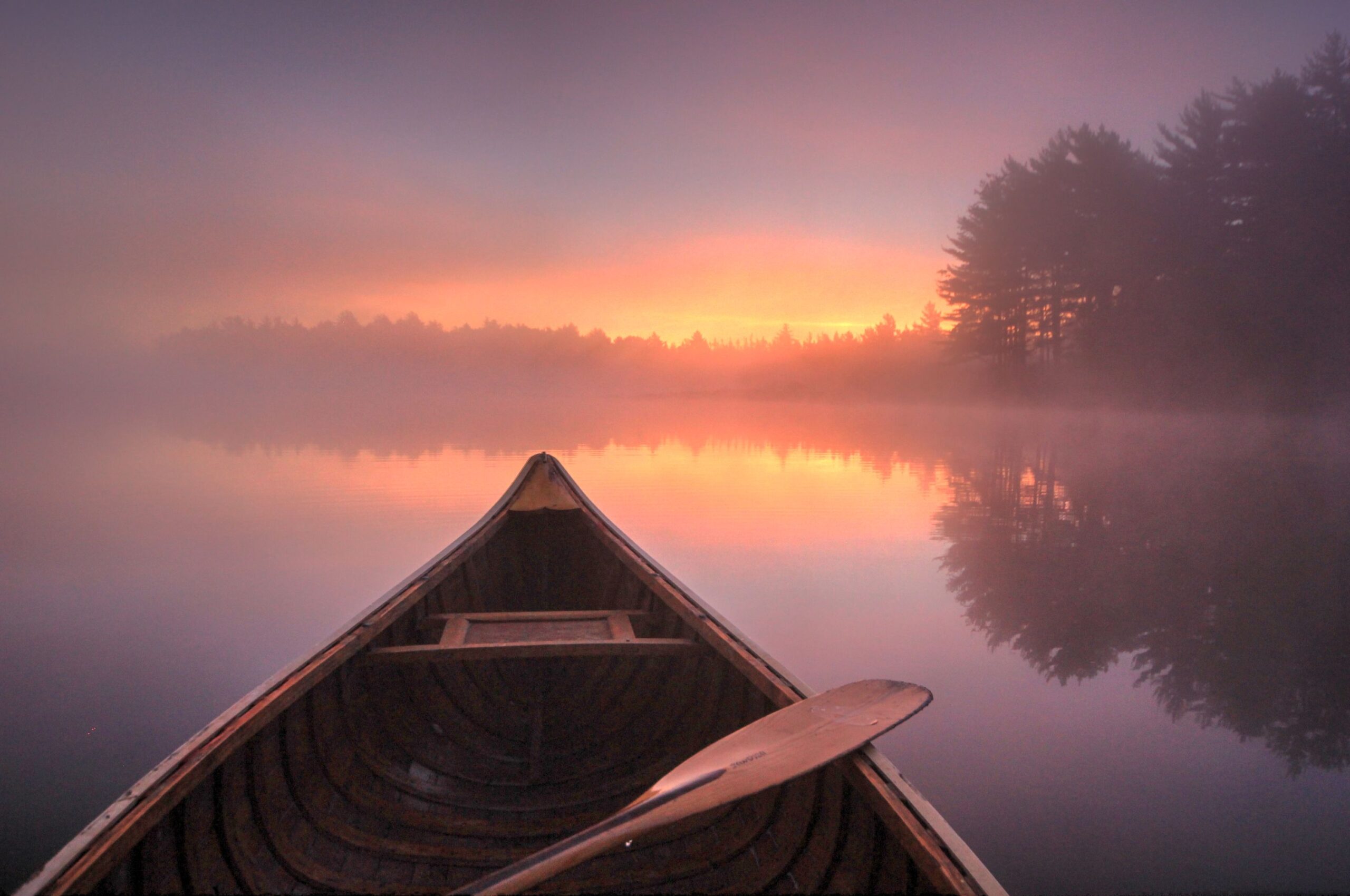 Meanwhile, the top photo was taken on a 4-day wilderness trip on the West Saint Mary’s River in NS a few moons ago. My paddle partner in the bow for that trip was Marcy Wallace. We had a wickedly wonderful wind in our backs that morning! Below: a sunrise paddle on First Carrying Lake at Birchdale.